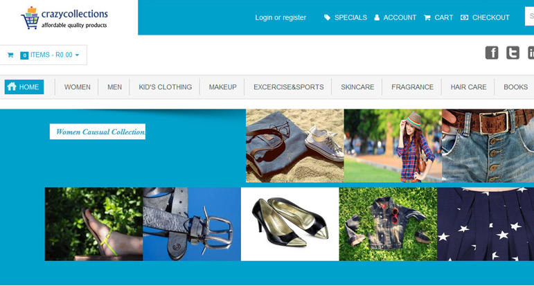 crazycollections.co.za is a online retail for African customers. To know more kindly visit us